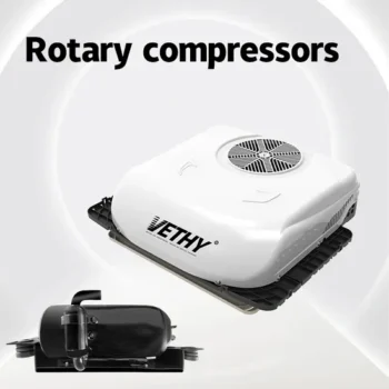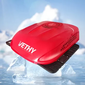 VS02-Pro is a roof-mounted electric air conditioning unit with air-cooled cold style, suitable for RV, Truck, Van. It features sealed structure, aluminium body and copper pipe, ensuring durability. Equipped with brushless DC motor and direct-flow radiator for efficient cooling.