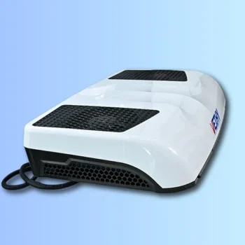 A roof-mounted electric cooling system designed for RVs, Trucks, and Vans. Features R410A refrigerant, 2400W/8188BTU cooling capacity, and a 2-year warranty for reliable performance.