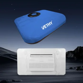 VS02-pro is a roof-mounted electric air conditioning unit designed for RV, truck, and van. Featuring a 2400W (8188BTU) cooling capacity, rotary compressor, and brushless DC motor, it ensures efficient and quiet operation with a noise level of 55 dB. The sealed structure with R410A refrigerant and alcohol cooling fluid (Great Wall brand) guarantees reliable performance.