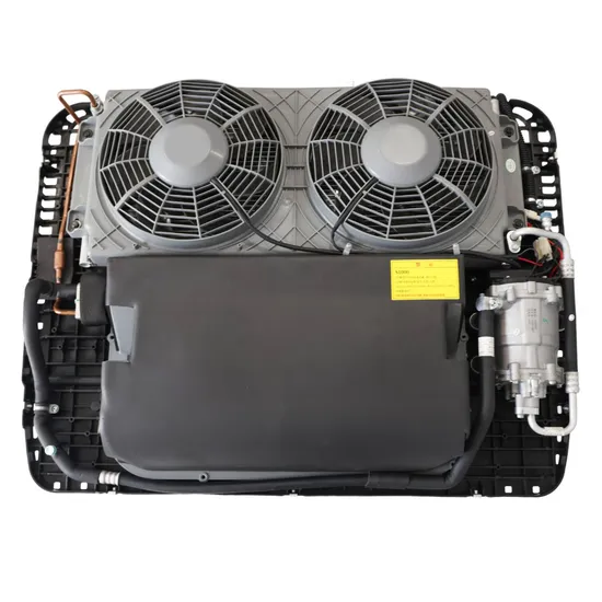 A high-quality roof-mounted electric cooling system with quiet operation, suitable for 60 people capacity. Features R134A refrigerant, air-cooled cold style, and durable aluminium body with copper pipes. Equipped with a brushless DC motor and rotary compressor for efficient performance.
