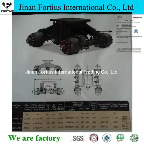 | Part name | Fortius Trailer parts trailer axles 13ton 16ton American type German type super 35t 32 ton tunnel bogie set assembly single pint suspension axles |