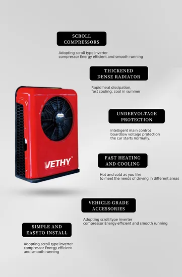 This multi-functional DC air conditioner with model KT-03 features both cooling and heating functions, suitable for universal car models. It adopts air-cooled cooling and air heating technology, providing efficient temperature adjustment with four adjustable areas, ideal for various vehicle environments.