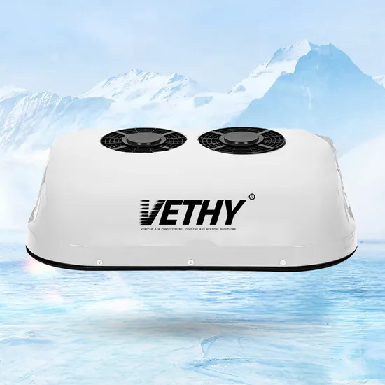 A high-quality roof-mounted electric cooling system with quiet operation, suitable for 60 people capacity. Features R134A refrigerant, air-cooled cold style, and durable aluminium body with copper pipes. Equipped with a brushless DC motor and rotary compressor for efficient performance.